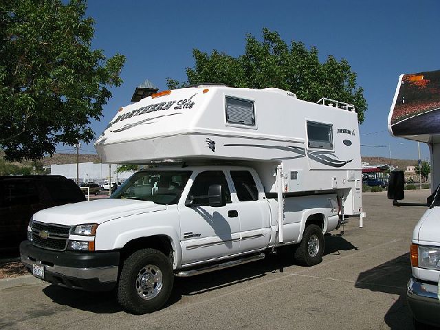 Die Geschichte beginnt irgendwann im April 2008, auf einem Besucherparkplatz am alten Bahnhof in Kingman, Arizona. Wir parkten mit unserem gemieteten Cruise-America-Wohnmobil (rechts im Bild) neben einer veritablen Fullsize-Wohnkabine mit Kellergeschoss auf einem ordnungsgemässen Pickup: