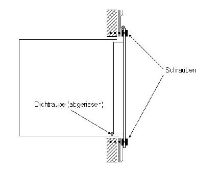 Die Illustration zeigt links den Wandaufbau im Schnitt. Eine Tragkonstruktion aus Holz ist mit Glaswolle ausgefacht. Aussendrauf kommt eine Lage Styropor. Darauf eine Lage Aluminiumblech. Die Klappe ist von aussen eingesetzt. Als Dichtung gibt es eine Art Moosgummi- bzw. Schaumstoffband. Die äussere Fuge ist dann mit Silikon abgedichtet.