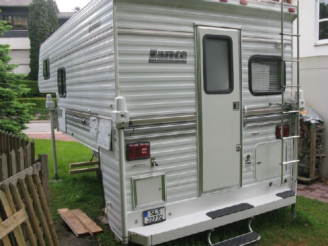 Im Pickup-Wohnkabinen-Forum wird einem in solchen Fällen boshafterweise die Telefonnummer eines Forumsteilnehmers in den USA zugespielt, der so etwas mal eben besorgen und rüberschicken kann. Wer sich mit dem Gedanken trägt, diese Nummer zu wählen, der sei hiermit ausdrücklich gewarnt: Der Mann macht das wirklich. Und er ist sogar ziemlich rührig. Wir wollten eigentlich nur mal so nachfragen wie das so wäre, mit dem Kabinenkauf und dem Verschiffen und den Abwicklungsverfahrensmodalitäten. Eine Stunde später hatten wir im Prinzip unsere Kabine blind gekauft. Aus einer Ebay-Auktion. Eine Lance 915, Modell 2002, mit Klimaanlage und elektrischen Stützen und ansonsten ohne viel Schnickschnack. Tatsächlich hat es ein paar Tage länger gedauert, bis das Gescäft abgewickelt war, aber das Tempo war schon atemberaubend. In dem Zusammenhang darf ich mich bei meiner Hausbank bedanken. Die können, wenn sie wollen. An einem Tag eine Finanzierung abzuwickeln, auszuzahlen und nach USA zu überweisen ist technisch möglich. Keine 6 Wochen später stand das gute Stück - noch Namenlos - in einem kleinen Dorf nahe Wuppertal in der Hofeinfahrt, bereit für uns zur Abholung. Beim Sohn des Mittelsmanns in den USA. Die beiden importieren regelmässig Pickups, ausschliesslich Dodge Ram, und wenn da mal eine Wohnkabine mitkommen kann, ist das um so besser.